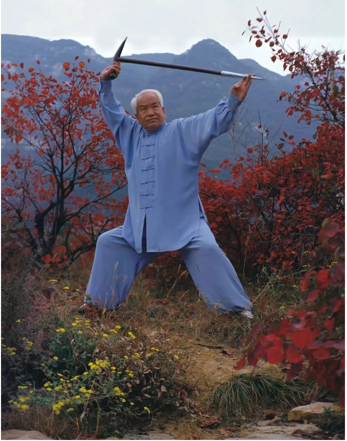 1948年参加工作后,历任小学教师、小学校长,却始终未放下祖传的达摩杖与春秋大刀。