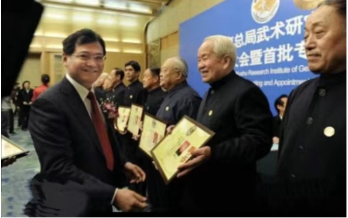 国家体委领导为梁以全先生颁发《中国当代十大武术名师》证书