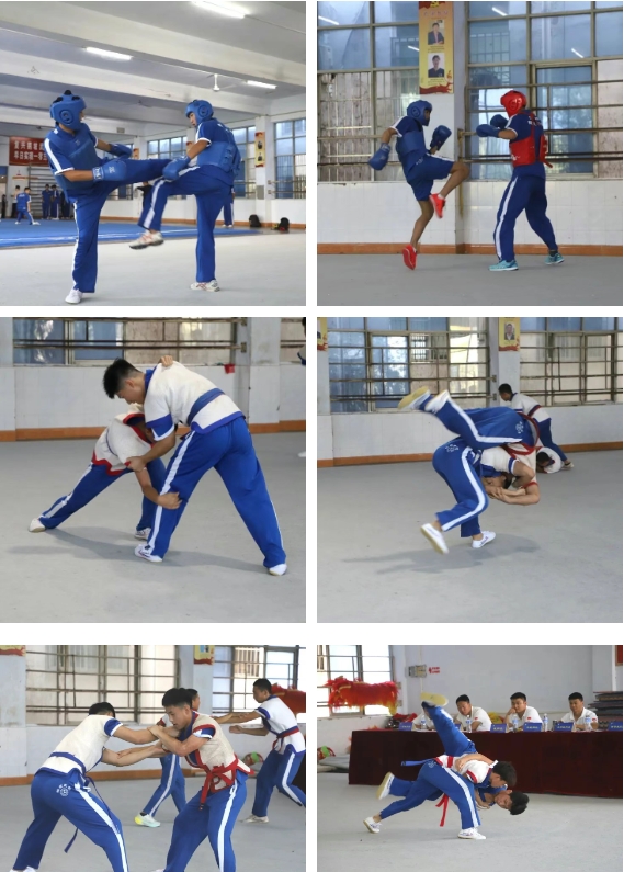 散打考场则战况激烈,拳法精准有力,腿法凌厉迅猛,摔法干净利落,他们攻防转换间将实战技巧发挥得淋漓尽致,充分展现了鹅坡学子扎实的武术功底和顽强拼搏的精神风貌。