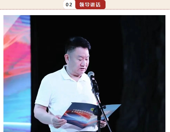 少林鹅坡教育集团董事长、鹅坡武校总校长梁少宗讲话,他代表学校向10位"最美学生"和导师表示祝贺。他指出这场以"德、能、勤、文、武"为标准的评选,展现了鹅坡学子在品德修养、专业能力、勤奋坚持、文化学习和武术技艺上的卓越风采。"最美"不仅体现在训练场上的坚持、帮助同学的担当、严守纪律的品格,更体现在文武兼修的全面发展中。