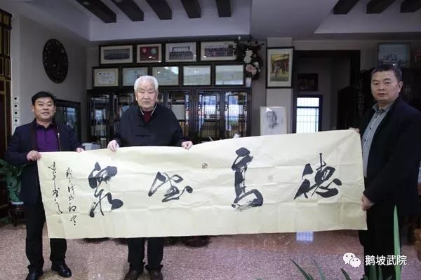 鹅坡武院创办人梁公以全以他高尚的人格魅力和社会影响力,被河南登封赛区组委会特聘为嘉宾评委。同时,还特别赠献一巨幅名家墨宝“德高望重”。