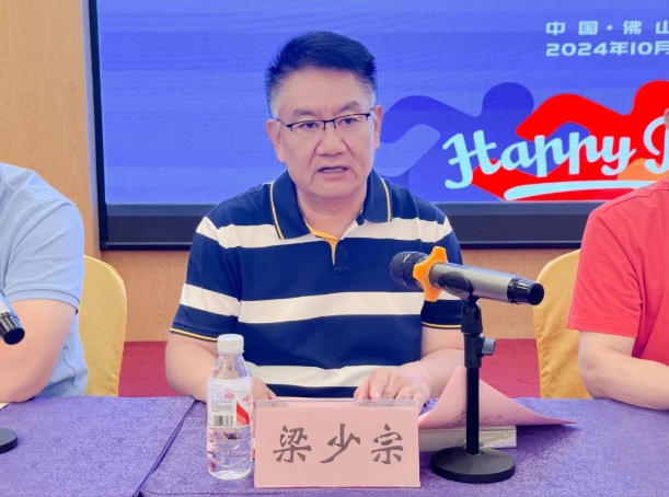 佛山市武术协会主席、鹅坡集团董事长梁少宗做赛事筹备情况介绍。他从加强组织领导、扎实开展工作、优化服务保障、加大宣传力度、严守安全底线五个方面进行了详细说明。他讲到,本次大赛的各项筹备工作已全部到位,全体工作人员将坚持高标准、严要求,聚焦重点、盯住关键、细化措施,竭诚为参赛队伍提供贴心入微、细致周到的服务,并预祝本届赛事取得圆满成功。