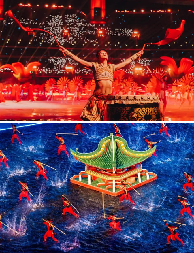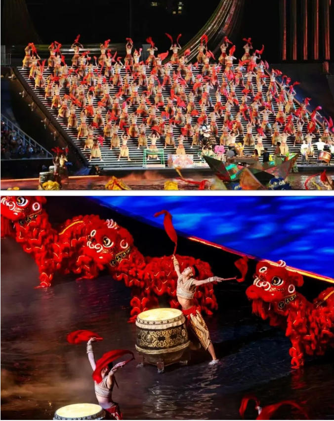 与此同时,近两千名飞鸿学生以磅礴阵列铺满整个舞台,彩旗翻飞间,呐喊声与水光、棍影、鼓声交织成一幅气势恢宏的中华武术长卷,将现场气氛持续推向高潮,让观众沉浸式领略中华武术的独特魅力,更从飞鸿学生们的身上,看到中华武术薪火相传、生生不息的蓬勃生机。
