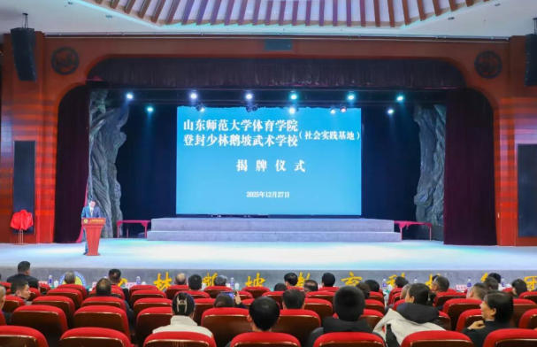 冬韵嵩山,暖意盈怀。12月27日,山东师范大学体育学院与鹅坡武校社会实践(实训)基地揭牌仪式隆重举行。出席本次活动的领导有中国学生体育联合会大学武术分会主席杜长有、副主席田苏辉、秘书长苏长来,山东师范大学体育学院院长王海鸥,鹅坡集团董事长梁少宗,鹅坡武校书记常福晓等,以及参加中国学生体育联合会大学武术分会2025年度会议的全体嘉宾。