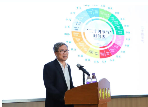讲座中,吕宏军教授以中原地区独特的地理禀赋、气候特征、人文底蕴与农耕根基为切入点,系统梳理了二十四节气从周公测影、“两至两分”到春秋战国“四立”概念的形成过程,讲解了秦汉时期节气的命名与入典,以及隋唐以来历代历法对节气体系不断完善的关键贡献。