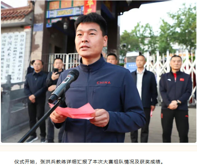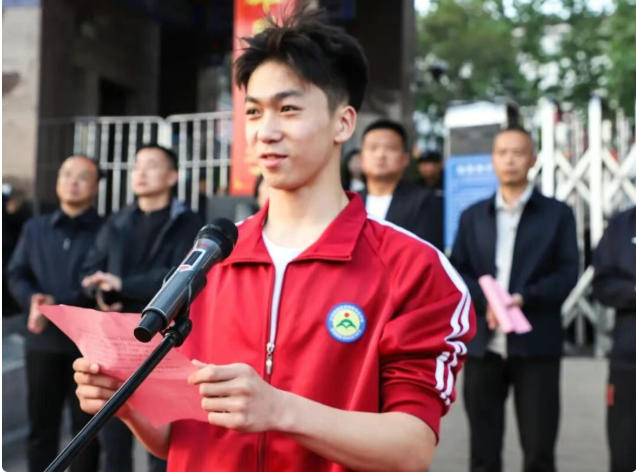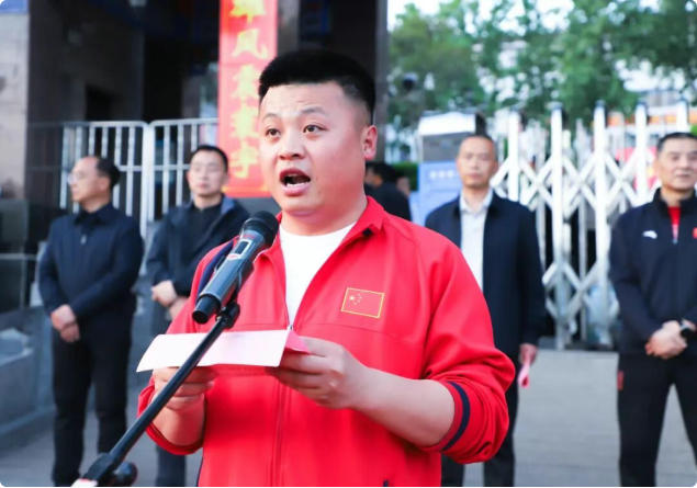 李攀教练代表全体教练员作表态发言,表示将再接再厉、精益求精,为学校培育更多优秀武术英才。