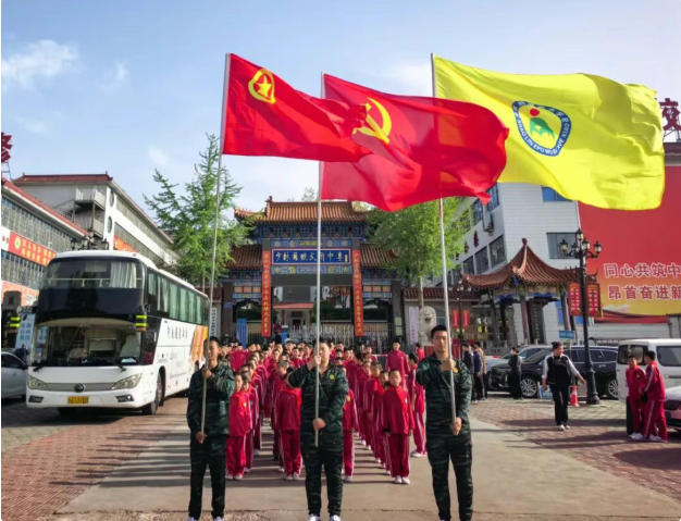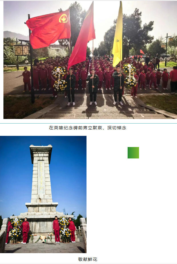 “青山埋忠骨,史册载功勋”,师生们满怀崇敬之情,在英雄纪念碑前举行了庄严的祭奠仪式。