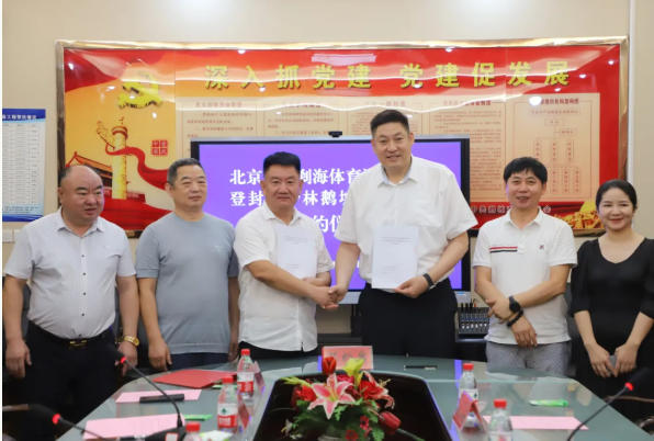8月21日,北京市什刹海体育运动学校与登封市少林鹅坡武术学校合作签约仪式在鹅坡武校隆重举行。北京市什刹海体育运动学校校长周建东、副校长鲁雪峰,与少林鹅坡武术学校校长梁少宗、副校长王金波等双方领导共同出席了仪式。