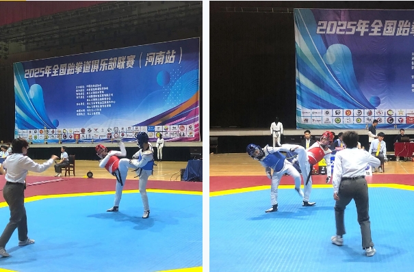 2025 年5月2日至5月5日,全国跆拳道俱乐部联赛(河南站)在商丘市体育馆拉开战幕。本次比赛吸引 60 余支代表队1200 余名运动员同场竞技,分设儿童组、少儿组、少年组、青少年组、青年组五大组别,涵盖品势(个人、混双、团体)、竞技(个人)、击破、跆拳道舞、特技击破、团体竞技六类项目,赛程紧凑、对抗激烈,尽显跆拳道运动的速度与力量之美。