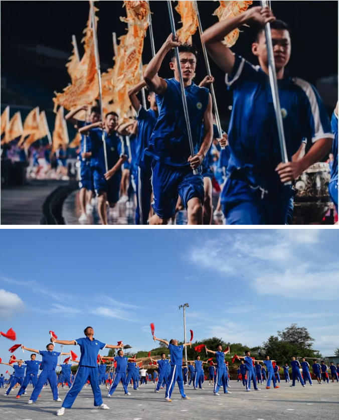 拳脚收势,余韵悠长。近两千名飞鸿学生,历经三个多月日夜打磨、100多个晨昏交替、累计超1000个小时的极限排练,他们用汗水诠释热爱,用坚持书写成长,为全国观众呈现了一场精彩绝伦的武术盛宴。这是青春的画卷,更是时代的华章。武术种子在校园沃土生根发芽,正是体教融合的生动实践;武术之花在全运舞台璀璨绽放,正是文化自信的有力彰显。