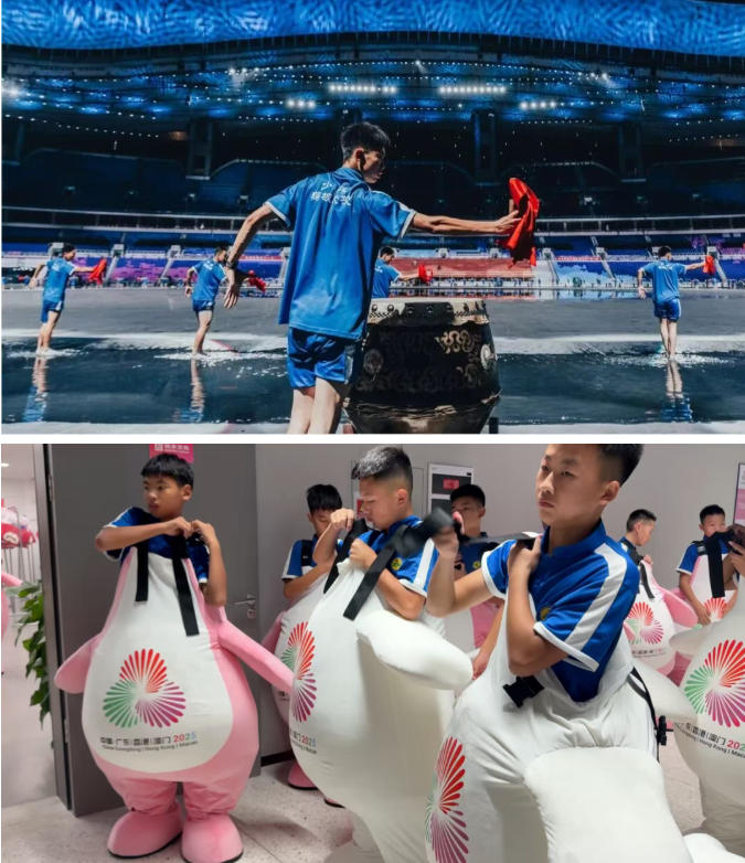 自接到全运会开幕式表演邀请,学校领导高度重视、迅速部署,秉持“高标准、严要求、零失误”核心目标,在全校层层遴选、优中选优,组建起近两千人的参演队伍,并制定科学严密的排练方案。