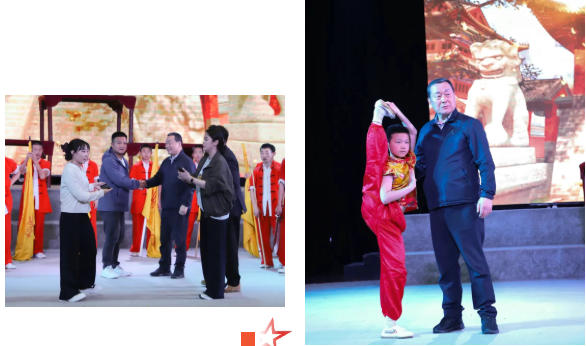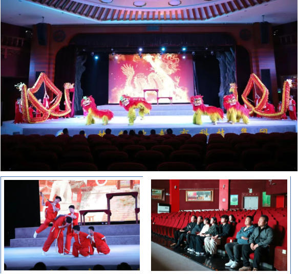 调研最后环节,代表团走进展武堂,欣赏了一场精彩纷呈的武术表演。伴随激昂的鼓点,舞龙舞狮率先登场,金龙翻腾、雄狮腾跃,气势恢宏,瞬间点燃全场气氛。随后,各种拳术器械轮番上演,一招一式尽显中华武术的博大精深。