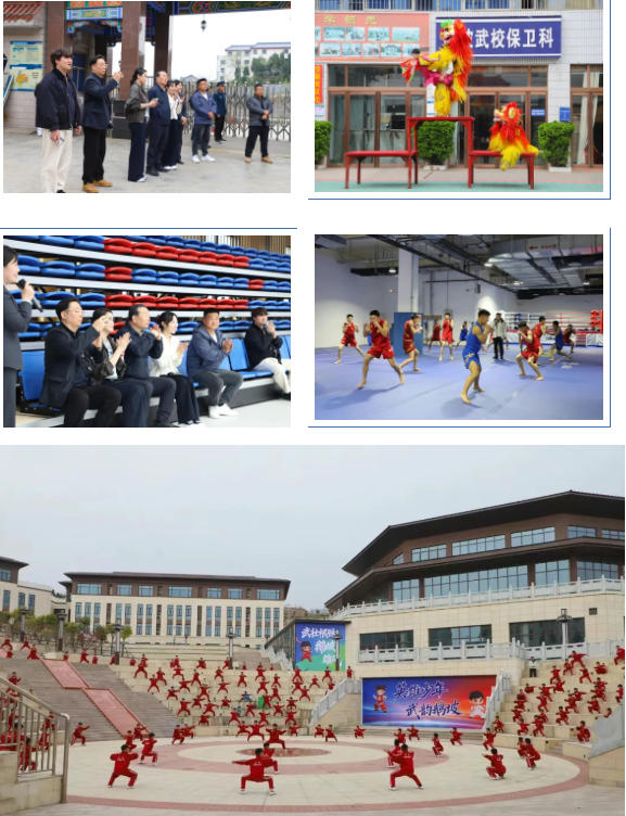 随后,代表团来到训练场和体育馆,实地观摩学生日常训练。训练场上,学员们精神抖擞、动作刚劲有力,拳术套路行云流水,器械演练虎虎生风;体育馆内,各训练队分组练习,教练员悉心指导,学员们刻苦投入,训练氛围紧张有序。代表团成员频频点头赞许,对学校科学系统的训练体系和学生昂扬向上的精神风貌给予高度评价。